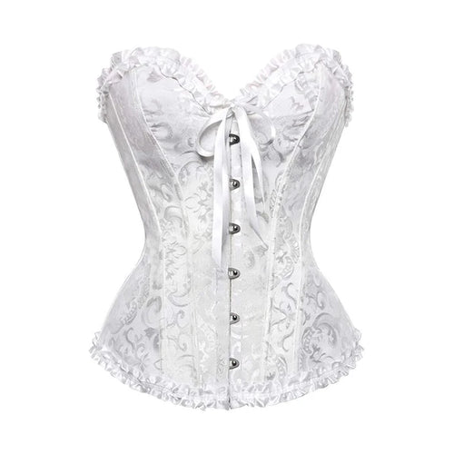 Command presence with this exquisite floral overbust corset, crafted to enhance the figure while exuding gothic sophistication. Featuring reinforced boning, a lace-up back, and intricate brocade detailing, it offers both structure and style. Ideal for gothic fashion, steampunk looks, cosplay, or formal occasions where elegance meets edge.
